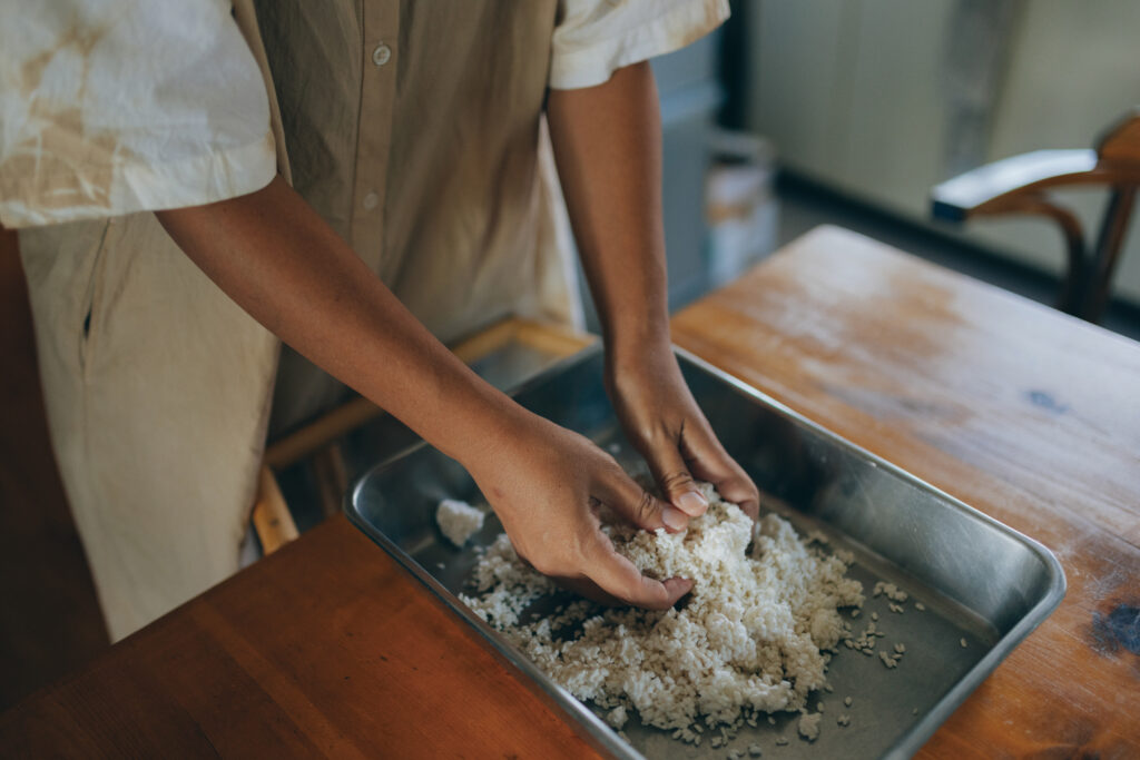 宮内美穂さん。24年に神奈川県から家族で移住。現在はかねてから実践してきた麹づくりの経験を生かし、自宅や公民館などで手づくり麹教室も開催している。