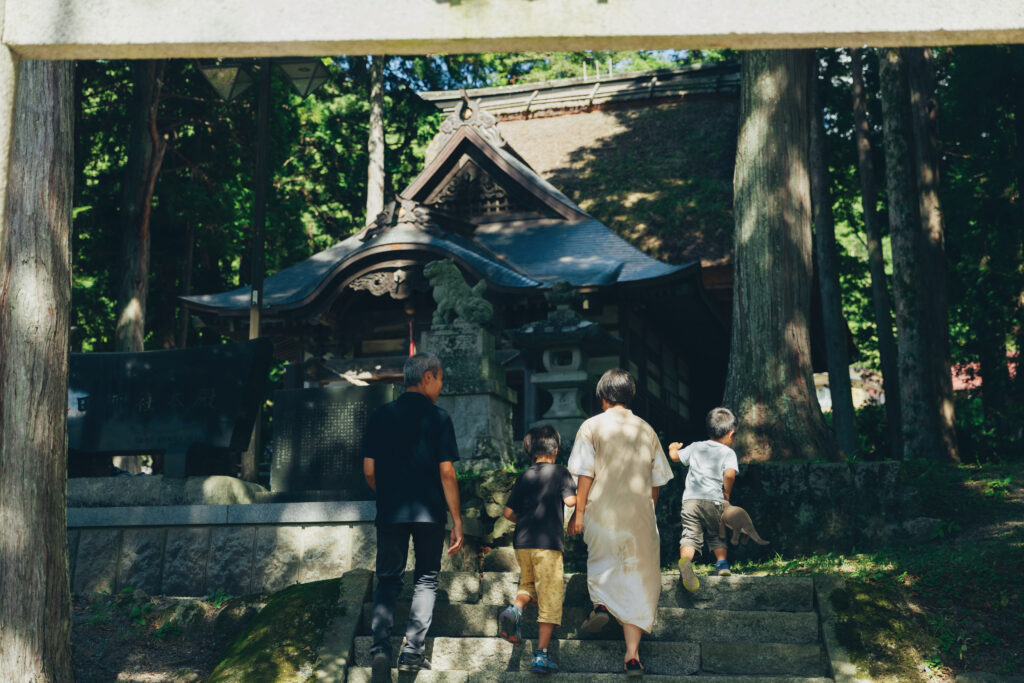 宮内家のお散歩コースの1つ、熱田神社。地元には、村人を悩ませていた大蛇を日本武尊が退治したとの伝説があり、同神社はその恩恵に感謝して祀ったものといわれている。かやぶきの覆屋のなかにある本殿は国指定重要文化財。