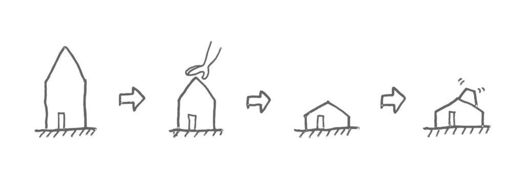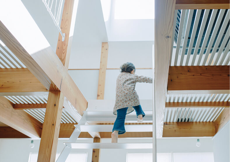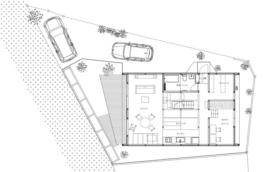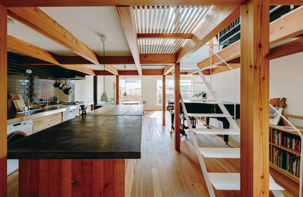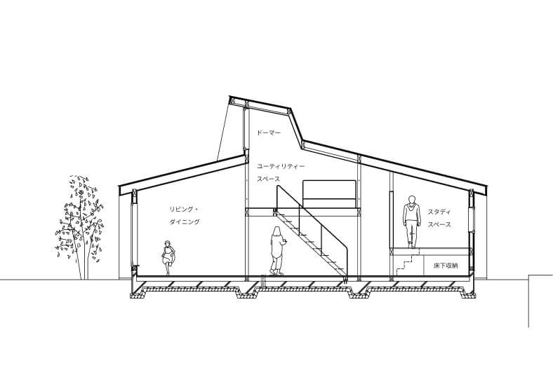 長手6間×短手4間、カラマツ材の長さにより棟高7m以下という制限の中で、建築としての完成度と暮らしの充足を追求したペッタンコハウス。