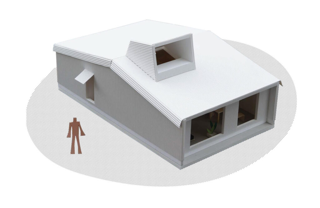 ペッタンコハウスの中は、玄関とバスルーム以外ドアのない、ひとつながりの空間。 田辺さんは常々、家族の構成人数の変化で個室がデッドスペース化するのを解決したいと考えていたそう。「住宅は住み手の生活に寄り添うものですが、人生のある時期だけにフォーカスしすぎるとデッドスペース化が早まるというジレンマがあって。それなら敷地に対して最大限快適な“ハコ”をつくり、あとは住み手が必要に応じて仕切ったり開放できたら、誰もが暮らしやすい永続性のある建築になるのではと考えたんです」