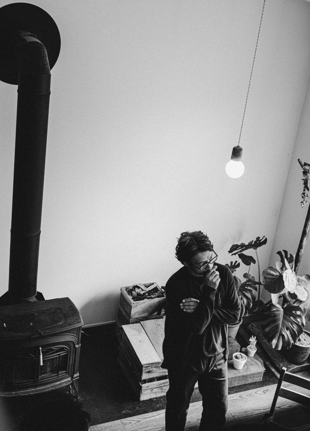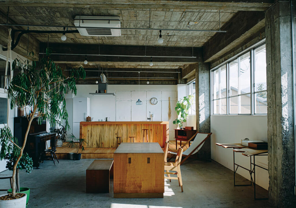 「リビングを作品のショールームと兼ねる予定だったので、キッチン寄りの生活動線は必然的に生まれました。けれど住み始めてみるとこの形は想像以上にマルチユースで、どんどんキッチンが生活の中心に。機能面だけでなく、人と話しながら作業や食事をするスタイルが取りやすいんですよ。このキッチンは家での時間の密度が増す、暮らし方そのものが変わる装置だなと実感しています」